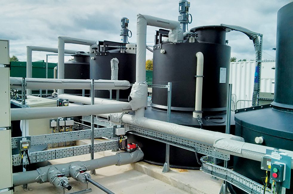 We’ve been developing the anaerobic technology over the last 10 years or so with one of our research partners, Cranfield University. Anaerobic treatment is already successfully used in warm countries like Brazil, but recent research breakthroughs with anaerobic membrane bioreactors (AnMBRs) have developed a process capable of efficient treatment in temperate climates like the UK’s. Next year we’ll be commissioning, at Spernal, the largest demonstration scale AnMBR system in Europe, capable of treating up to 500m3/d. An AnMBR treats wastewater by using the same types of anaerobic micro-organisms used extensively to treat wastewater sludge in anaerobic digesters. However, in sludge anaerobic digestion the process is heated to between 35 and 40oC, with a municipal wastewater AnMBR the process has to be designed to successfully treat wastewater down to temperatures as low as 8oC. The system utilises an upflow anaerobic sludge blanket reactor (UASB) twinned with an ultra-filtration (UF) membrane. The bacteria break down the organic pollutants into biogas before being separated from the treated wastewater, and returned to the UASB by the UF membrane. The treated effluent is passed to a membrane contactor where any dissolved biogas is extracted. The biogas can then be converted to renewable electricity and used to power the treatment process. The AnMBR process is expected to work best where the majority of suspended solids have been removed from the influent and hence the combination of enhanced primary treatment with AnMBR is likely to be very complimentary.