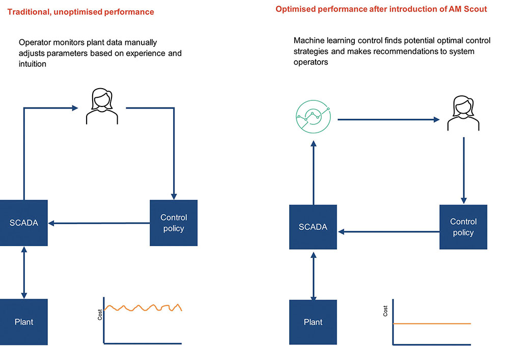 Optimising performance of industrial plants requires continuous expert tuning of numerous controls and consideration of multiple interacting performance metrics. Machine learning (ML) algorithms can be trained to learn complex behaviours relating to system performance, and then be exploited with optimisation algorithms to automatically suggest control strategies to continuously optimise plant performance. This approach allows plants to improve their efficiency without the need for CAPEX, thereby maximising the value of existing assets.